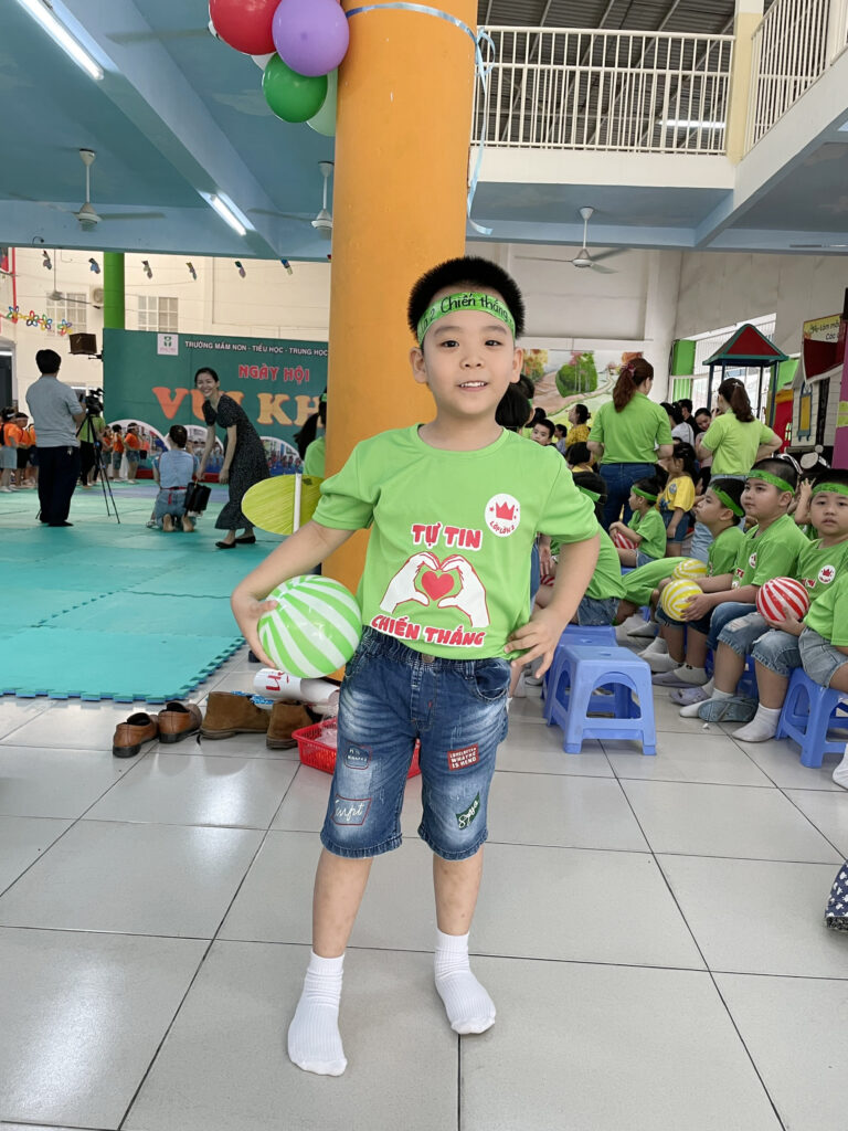 Từ thời của bé lớn, trường đã thường xuyên tổ chức các buổi văn nghệ, trung thu, hội chợ…Mỗi lần như vậy, con bé nhà tôi đều được các cô cổ vũ tham gia, từ đó bé đã trở nên tự tin hơn. Bé út thì được tham gia các buổi ngoại khoá thể thao, đi tham quan vườn sinh thái, còn được tự tay gặt lúa và nhổ củ cải nữa…